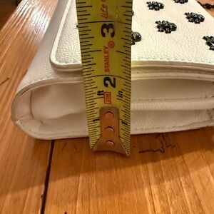 Betsey Johnson White Faux Leather Crossbody Bag with Black Skull Studs.