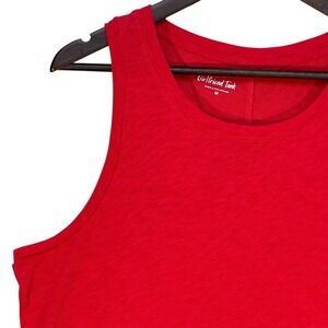 J. Crew Girlfriend Tank top in vibrant red. This essential sleeveless top features a classic scoop neck and a comfortable cotton blend fabric with a subtle slub texture. Perfect for layering or wearing on its own, it's ideal for casual outings, workouts, or weekend wear.