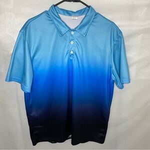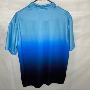 Mens Blue Black Gradient Performance Golf Polo Shirt L Moisture Wicking Stretch