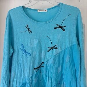 Jess & Jane Mineral Washed Cotton Tunic with Linen Contrast Dragonfly Blue M