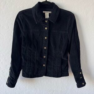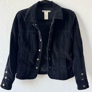 A.M.I Black Vintage Corduroy Jacket with Gold Button Snap Closure