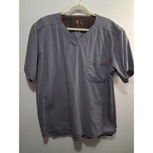 Carhartt Men Gray Short Sleeve V Neck Pocket Scrub Top Workwear XL