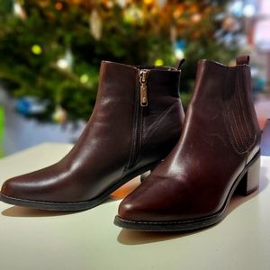 Like new condition, only worn once by original owner. No box. Beautiful Brownish burgundy colour. 100% waterproof leather outer, lined inside. Fits true to size, can fit size 7 as well since it’s pointed toe.