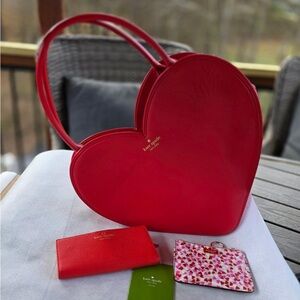 Bold heart-shaped bag in vibrant red. Perfect for making a statement. Stylish and functional design.