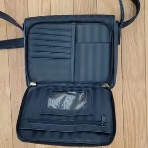 Gold tone hardware.