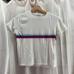 Brandy Melville White Graphic T Shirt Red Blue Stripe Graphic Tee