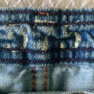Straight distressed jeans, washed denim with detailed stitching and fading in all the right places.