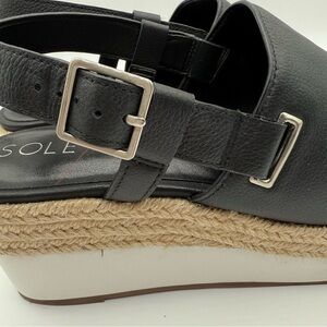 Sole Society Ayelani Boho Black Espadrille Wedge Open Toe Sandals SZ 9M