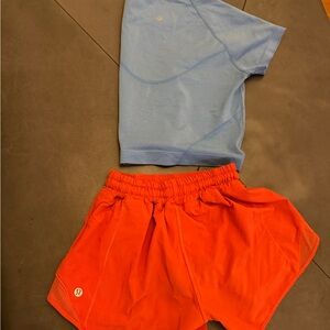 LULULEMON Blue Top and Orange Shorts Set- size 2tall shorts and small top