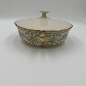 Lenox Serving Tureen with Lid Gold Trim Floral Pattern Porcelain Dish