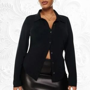 Aritzia Babaton Black 100% Silk Long Sleeve Button Down Shirt
