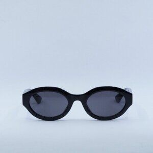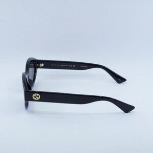 Gucci GG1579S 001 Sunglasses Shiny Black Oval Frame, Grey Lenses