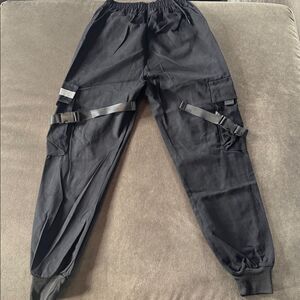 Men’s Black Streetwear Drawstring Cargo Utility Pants Size S NWOT