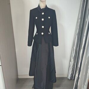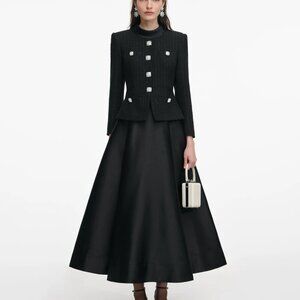 Self-Portrait Black Boucle Taffeta Midi Dress
