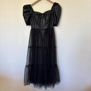 WEDNESDAY Addams ADULT Black Midi Dress Tulle Halloween Gothic Size S See Note