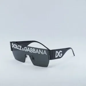 Dolce & Gabbana DG2233 01/87 Sunglasses Black Shield Frame, Grey Lenses