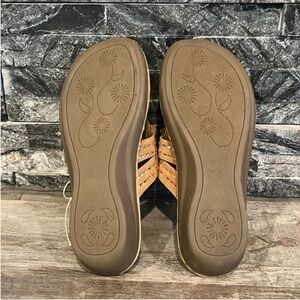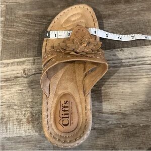 Cliffs by WHITE MOUNTAIN Tan Floral Sandals with intricate weaving