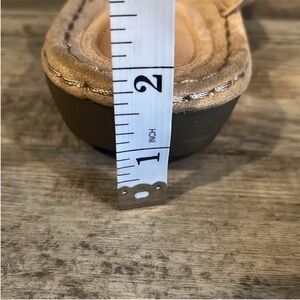 Stylish tan sandals with floral accents. Ideal for everyday comfort.