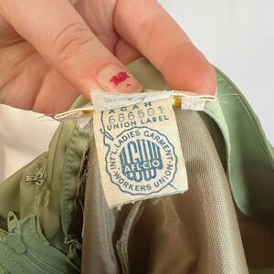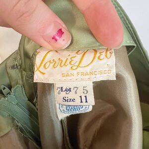 Vintage 1960s Green A Line Dress Bow Back Satin Knee Length Women's Size 11