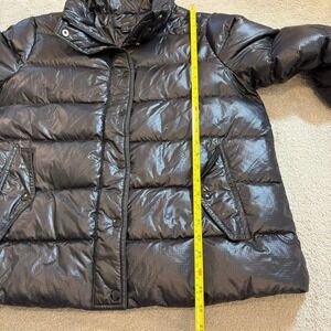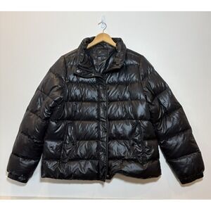 J.Crew Black Shiny Puffer Jacket Quilted Collar Snap Button Closure XL