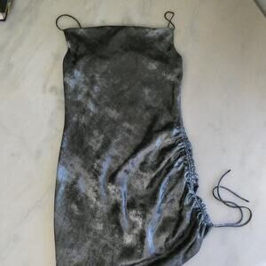 Topshop women's size 2 spaghetti strap silver black metallic dress ruched side