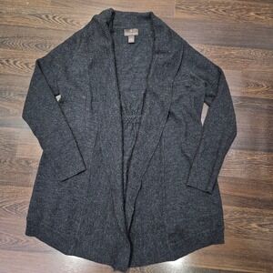 Keywords: Fenn Wright Manson, Merino Wool, Cardigan, Shawl Collar, Charcoal Grey, Italian Wool, Knit Sweater, Open Front, Gathered Waist, Layering Piece, Casual Chic, Workwear
