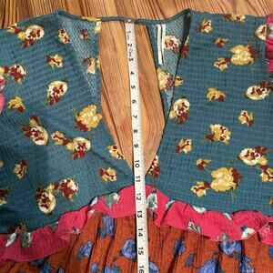 Anthropologie Mini Dress Size XL Ruffled Bell Sleeve Plunging V-Neck Floral