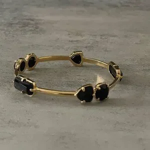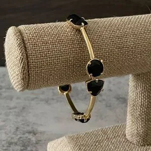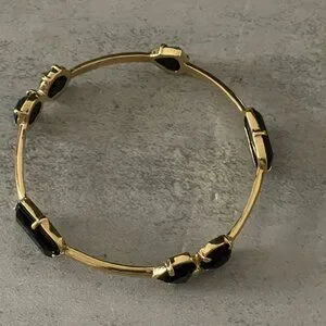 Kate Spade Desert Rose Black Opaque Glass Studded Gold Plated Slip on Bangle Bracelet 2.5" Diameter