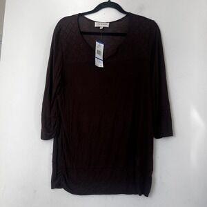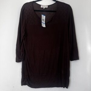 Women Blouse Tops XL V Neck Lightweight Brown Blouse Jones New York Sport