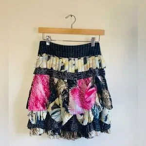 ● Vintage DVF Diane Von Furstenberg Kellen Layered A-Line Skirt