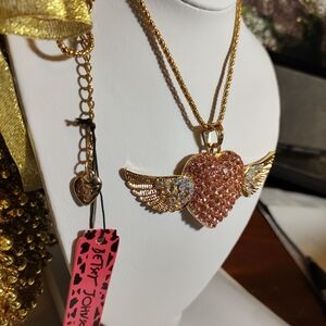 Betsey Johnson Gold and Pink Winged Heart Necklace