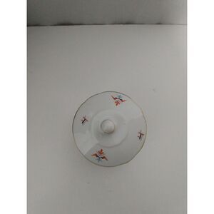 A touch of retro charm arrives in the form of this vintage sugar bowl. Its crisp white porcelain provides a clean backdrop for the eye-catching geometric design in shades of orange, black, and blue. A delicate gold trim graces the edges, adding a hint of luxury and sophistication. The fitted lid, complete with a rounded knob, keeps your sugar fresh and adds to the bowl's overall elegance. This piece is perfect for adding a pop of vintage flair to your tea service, displaying as a decorative accent on a shelf, or gifting to a collector of unique porcelain pieces.
