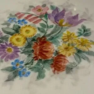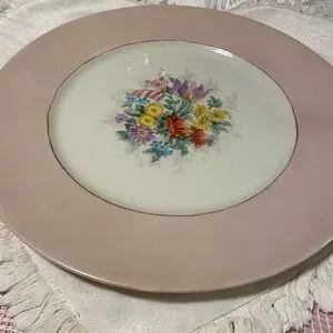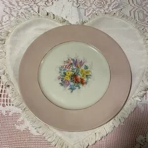 Lovely dinner plate featuring a beautiful floral design. Plate is soft pink hue & is perfect for cottage core or Shabby Chic decor