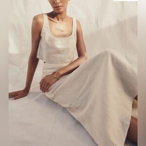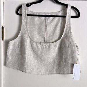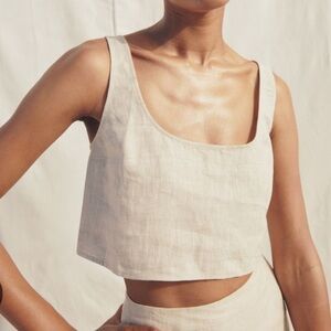 Reformation Adalyn Crop Top in oatmeal features a scoop neckline and relaxed fit for effortless style. Perfect for versatile summer looks.