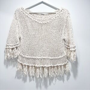 Free People Cream Crochet Knit Boho Fringe Cropped Top Size M