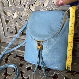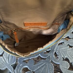 HOBO Fern Crossbody Pebbled Leather Blue Old English Brass Adjustable Strap