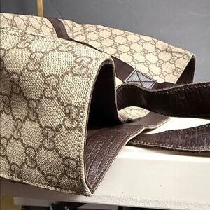 Gucci Supreme Monogram Canvas Tote with Dark Brown Accents PVC