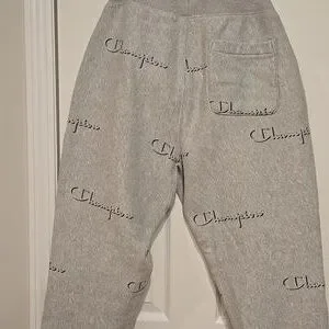 Champion Light Gray Joggers with Logo Men's LARGE