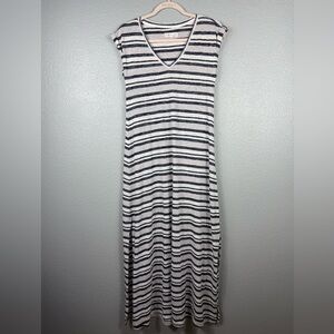 Lou & Grey For Loft V-neck Black White Striped Tee Maxi Dress LightWeight XS
