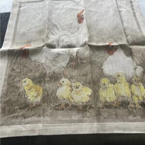 Williams Sonoma Volaille Tablecloth 100% Linen 70 x 108 Animals Rabbit Ducks NWT