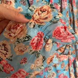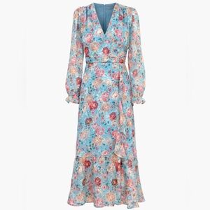 Adelyn Rae Floral Ruffle Wrap Midi Dress Blue – Size Small Feminine Romantic