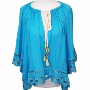 Ramy Brook Boho Beach Turquoise Blue Oversized Top Size Extra Small New