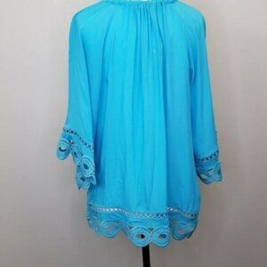 Beautiful turquoise blue cover up blouse.