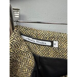 Anna Risca Skirt Womens Medium Green Tweed Herringbone Ruffle Hem Mini Academia