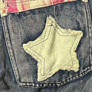BLUE VELVET patchwork embroidery relaxed fit fray hem washed out jeans sz XL