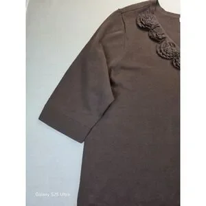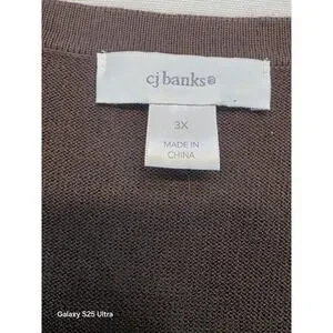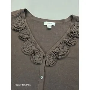 CJ Banks 3X Cardigan Brown 3D Floral Light 100% Cotton Office Staple 3/4 Sleeve