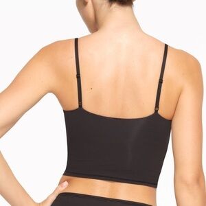 Skims Fits Everybody cropped cami in Black Onyx, size Extra Large. Fitted silhouette with a shelf bra for light support and a wide scoop neckline.