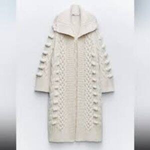 Stay warm and stylish with this cozy cable knit sweater. Perfect for layering, this cream sweater adds a touch of elegance to any outfit.Zara textured coat 3D raised cable knit chunky CREAM cardigan 2024 SIZE MEDIUM.