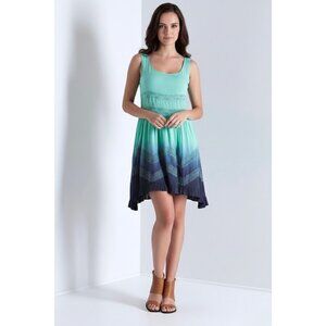 NWT Boutique Mint & Navy Blue Ombré Tiered Ruffle Hem Crochet Lace Flowy Mini Slip Dress