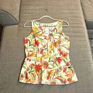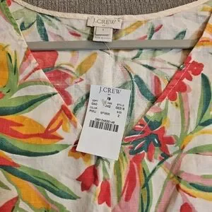 J. Crew Tropical Floral Linen Blend Lagenlook Peplum Top Size 2